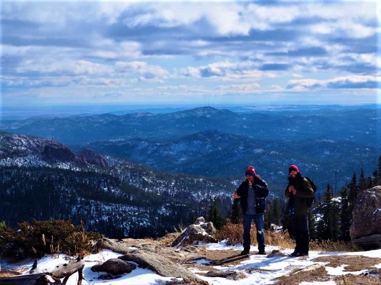I have been on a fair amount of hikes in the past couple years but this one in South Dakota was probably the best one of them all. The route that we took would take us up to a point called black elk peak, we were the only ones that day to go to the top. There was a pretty thick layer of snow on the ground but we’re obviously not going to let that stop us from hiking and thank god we didn’t! Dylan and I like to hike at our own pace so we were upfront while Gus Lee and EJ stuck together not to far behind us. It took us about an hour and a half to 2 hours to get all the way up and the view at the top/ on the way there were incredible. The snow covered mountains, the fogginess, the steep drop off points made it all the better. On the way down we got a little bit separated, but in the end we all made it back to the bus and we drove past Mount Rushmore on our way back (check that of the must see list).