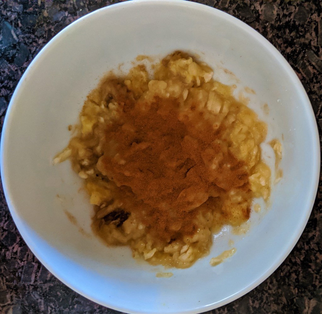 Step 2: mash the bananas completely, make sure that there are no chuncks in there. Mix in the cinamon powder afterwards (to taste)
