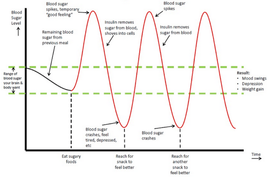 You might see the big problem that we have walked into here, we’re now in a constant loop where we go up and down the rollercoaster. It looks and feels like there’s no end to the ride that you’re on because you don’t fully realize that it’s happening to you, or you might realize what is happening but you don’t know how to get off. You’re in a constant back and forth state having a lot of energy (top of the rollercoaster) and feeling tired, sleepy, frustrated etc.. (Bottom of the rollercoaster). Luckily for us there’s a way to get off this ride that will eventually lead to serious health issues like diabetes and obesity, the chronic diseases that are negatively/ hugely impacting and taking millions of lives on an annual basis.